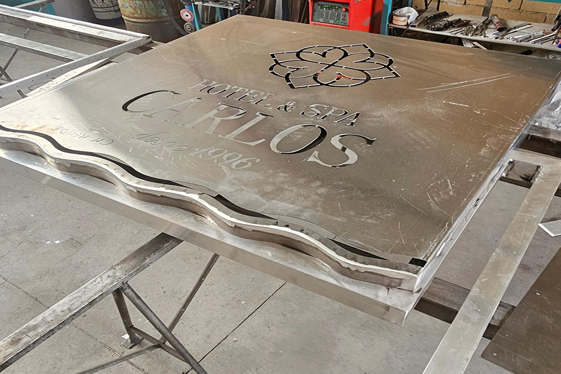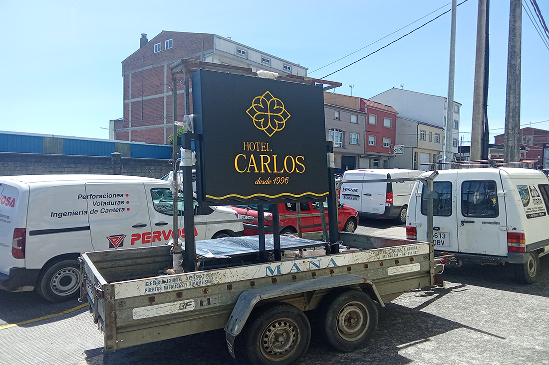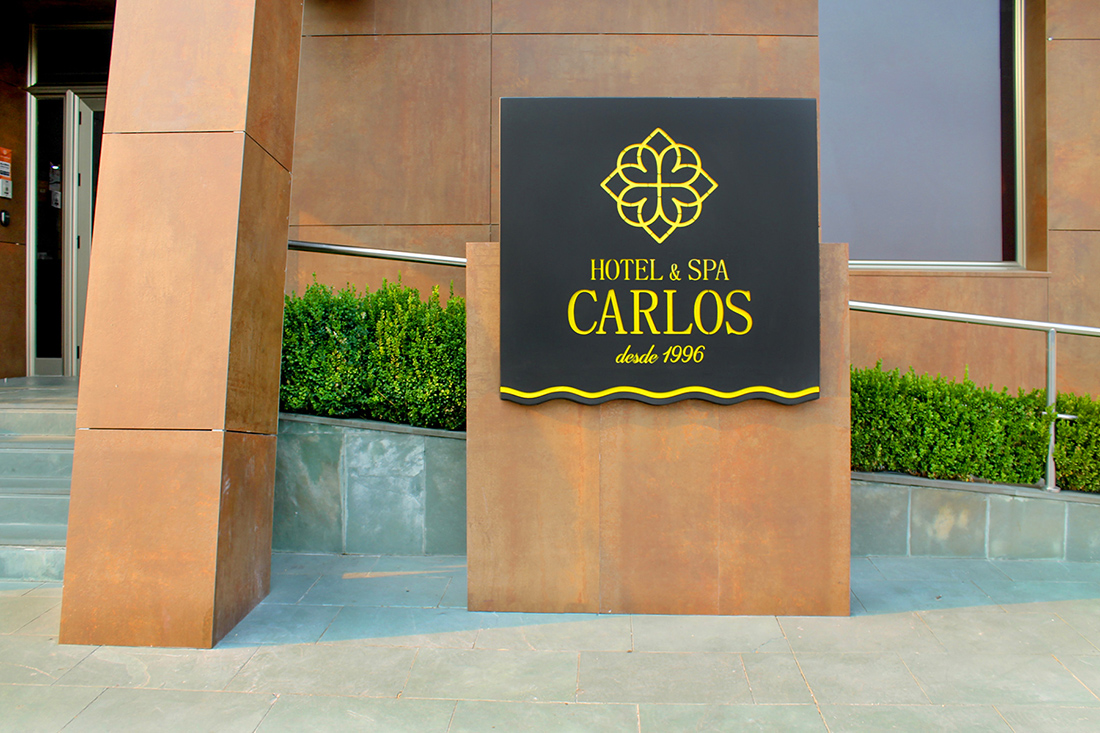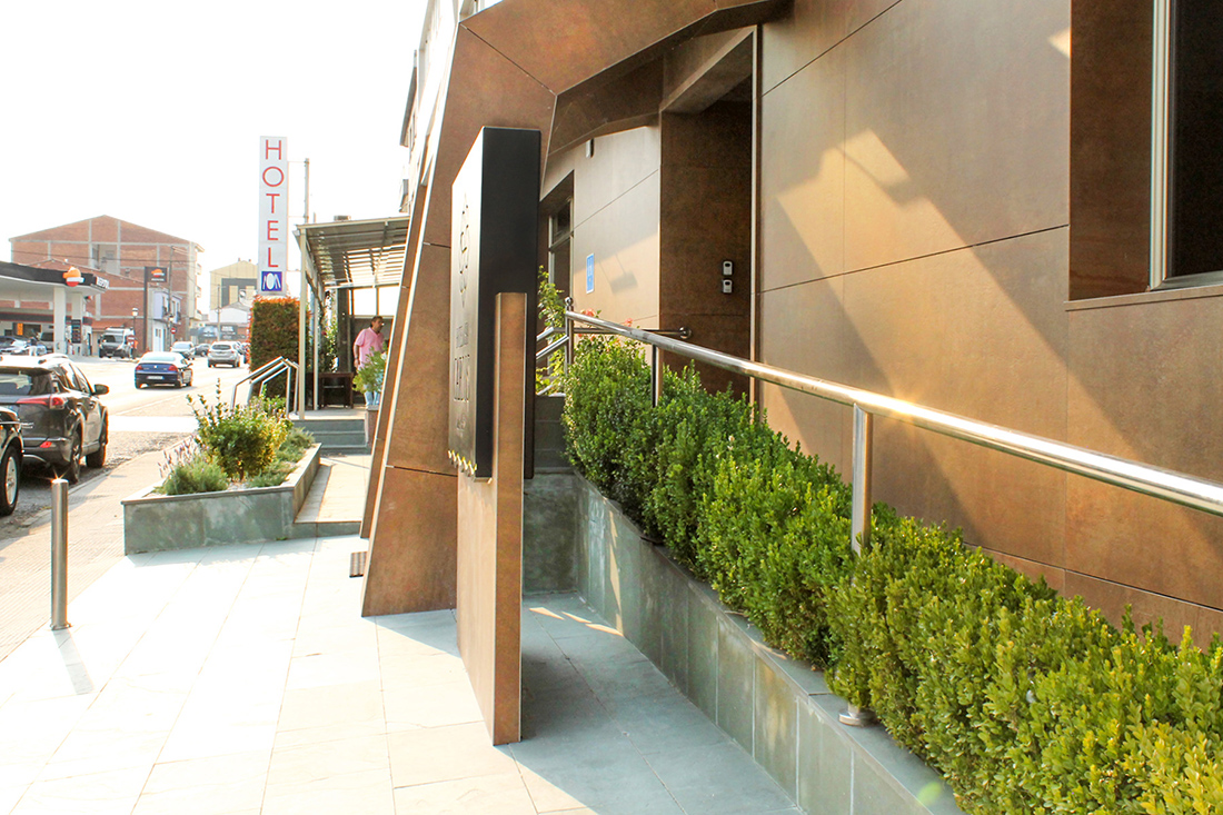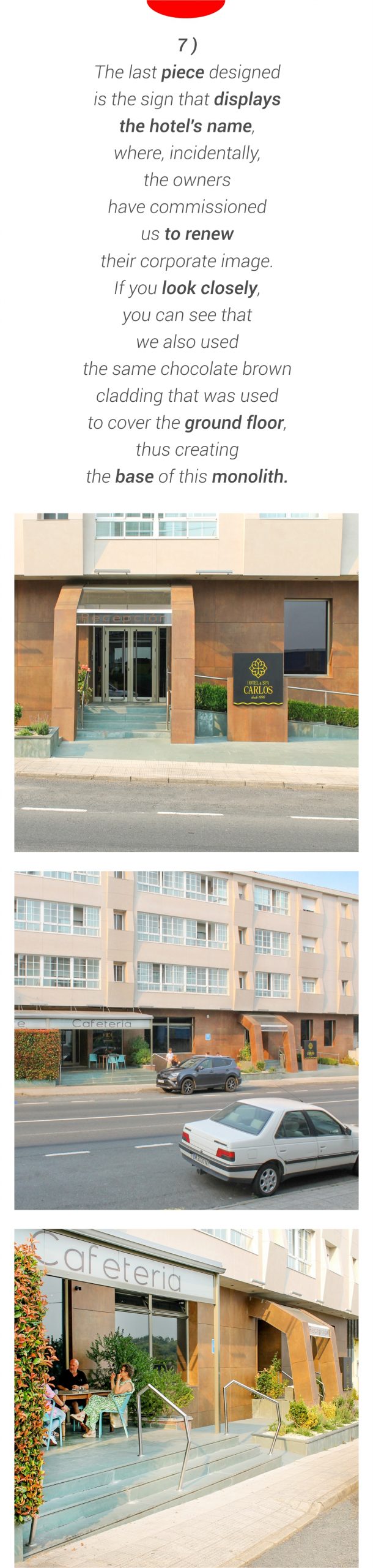 The last piece designed is the sign that displays the hotel’s name, where, incidentally, the owners have commissioned us to renew their corporate image. If you look closely, you can see that we also used the same chocolate brown cladding that was used to cover the ground floor, thus creating the base of this monolith.