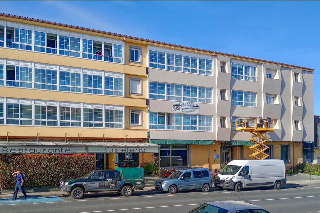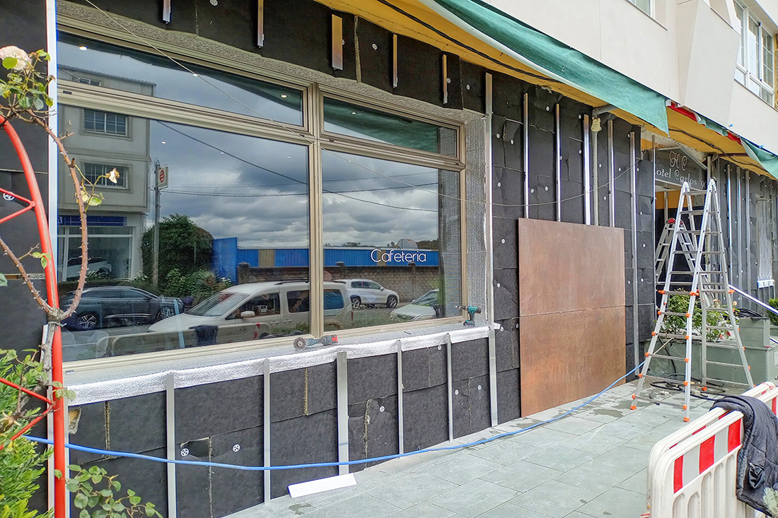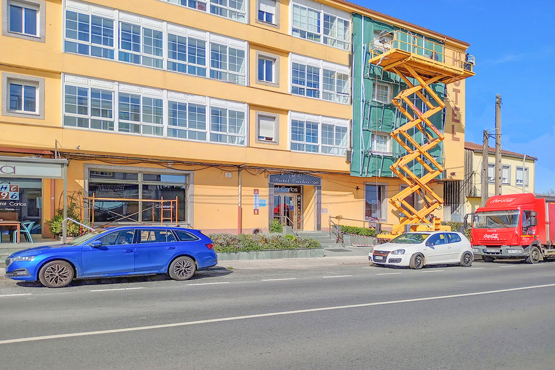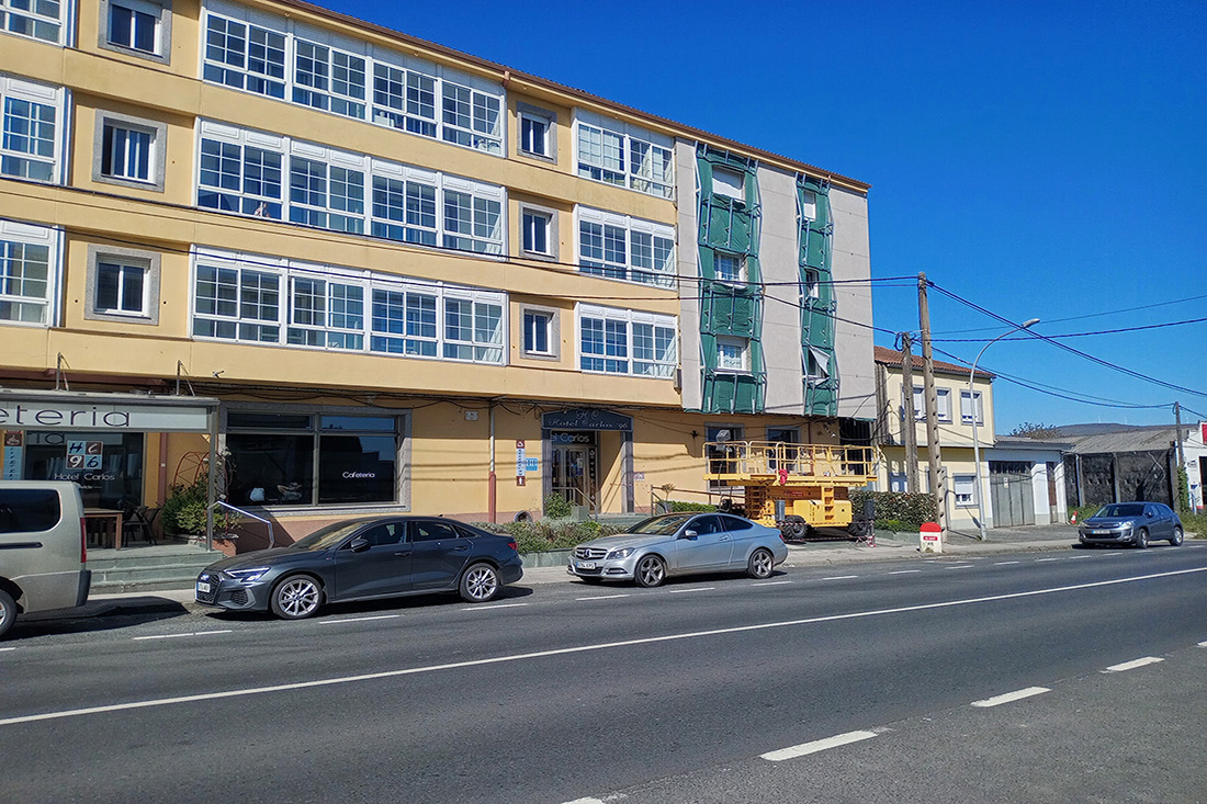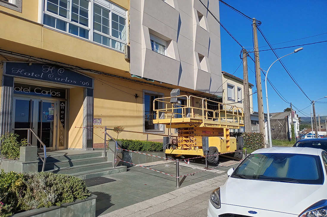 Photographs taken during the construction process. Hotel Façade Renovation in Melide, A Coruña
