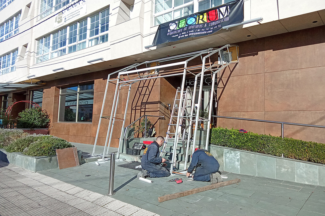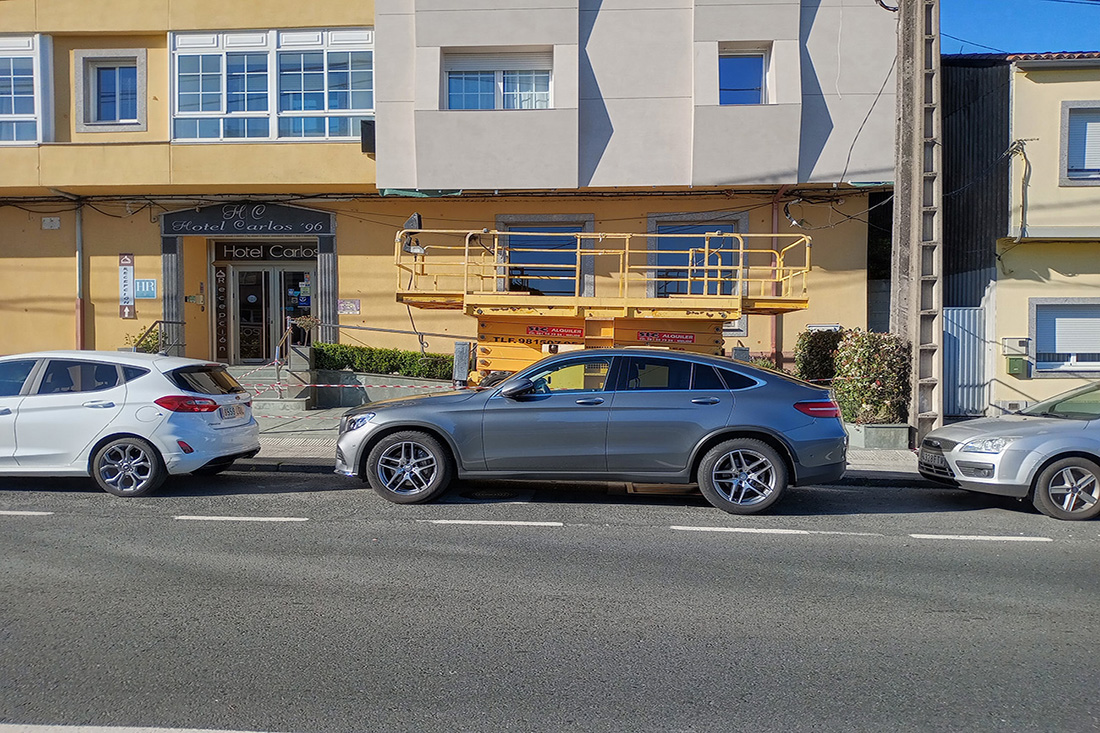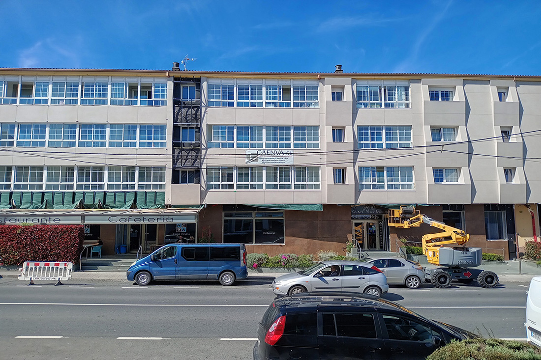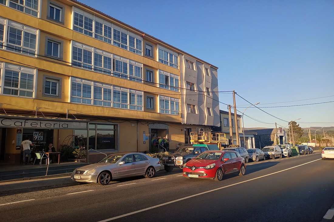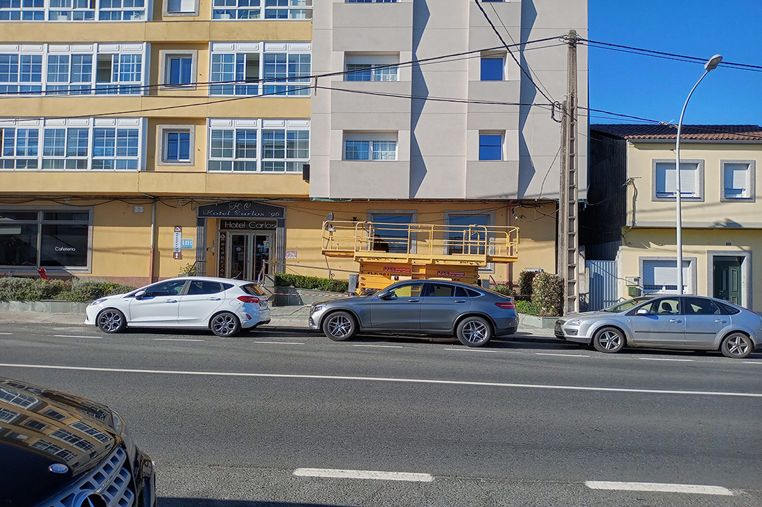 Photographs taken during the construction process. Hotel Façade Renovation in Melide, A Coruña