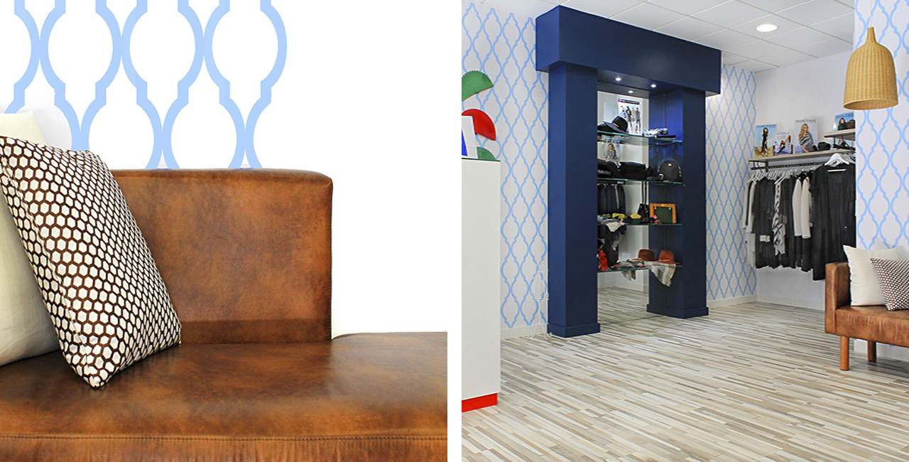Studio work has been captured exactly during the construction process, where among other details it has been done construction furniture, made with plates plasterboard, as isthe case of the counter customer service and a display porch of considerable dimensions for accessories like hats, bags, belts etc … The counter, with 2 parts differentiated, has been designed in a way that the cash box, the computer and the printer stay in a more reserved plane and so this parts will not mix or in actions related to the public.