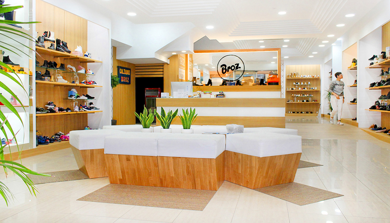 En cuanto a condicionantes, decir que, en toda zapatería aparecen exigencias que no deben darse por obvias. Ese tipo de limitaciones aparecen en los escaparates, deben ser accesibles pero igualmente incorporar rasgos formales singulares. Para este caso, se ha resuelto con una puerta celosía ligera de madera de Roble, con los travesaños alternados entre los largueros, cuyo funcionamiento cumple con las inquietudes iniciales que aparecieron en el arranque del proyecto. Este formato también ha sido plasmado en la parte trasera de este espacio interior, para desarrollar un separador celosía y poder señalar o indicar la existencia de una zona privada de almacén.