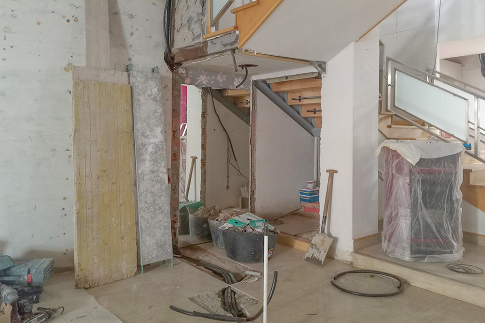 Fotografías realizadas durante el proceso constructivo. Renovación & Reforma de Local para Zapatería en Melide, A Coruña